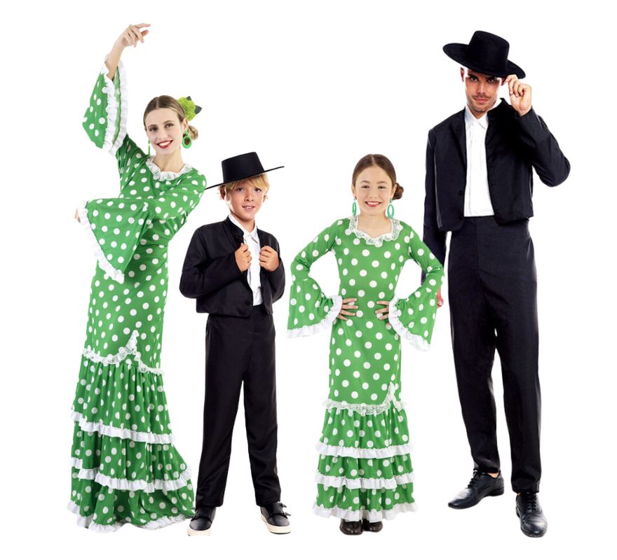 Fato de Sevilhana verde com bolinhas brancas para menina