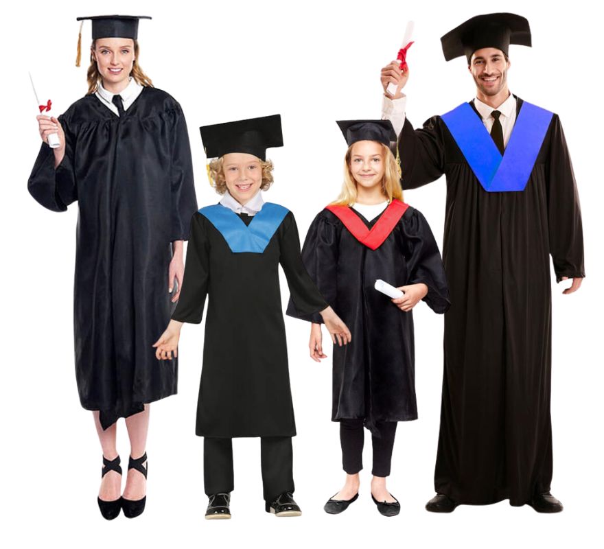 Fato de pós-graduação azul e preto para crianças e adolescentes